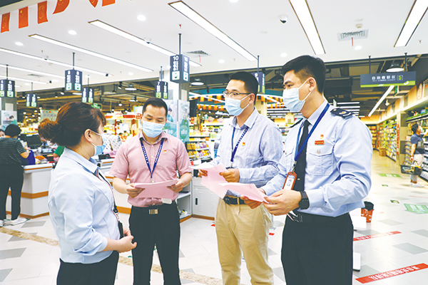 “五一”临近,福建省厦门市纪检监察机关紧盯违规吃喝、违规收送礼品礼金等节日期间易发多发问题,加大监督检查、明察暗访力度,对发现的问题严肃处理,营造风清气正良好环境。图为该市翔安区纪委监委工作人员联合区税务局在辖区某大型商超开展监督检查。颜妍 摄