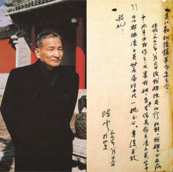 为此,陈云连发两封来信,让秘书如数退还了姐姐所领的接济费。后来,陈云还亲笔写了一封信,请吴江县松陵镇将陈星留在该地的一些财物一概交公。