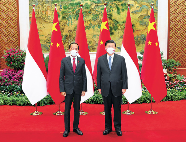 习近平指出,当前世界之变正以前所未有的方式展开,中印尼要同舟共济,展现发展中大国责任担当,践行真正的多边主义,坚持开放的区域主义,为推进全球治理提供东方智慧,贡献亚洲力量。中方全力支持印尼主持召开二十国集团领导人巴厘岛峰会,愿同印尼加强协调配合,确保峰会取得圆满成功。中方也将全力支持印尼当好明年东盟轮值主席国,愿同东盟加强团结协作,聚焦“五大家园”建设,不断释放中国东盟全面战略伙伴关系新动能。中方欢迎印尼继续积极参与“金砖+”合作,赞赏印尼支持和重视全球发展倡议和全球安全倡议,愿同印尼就此加强沟通合作。