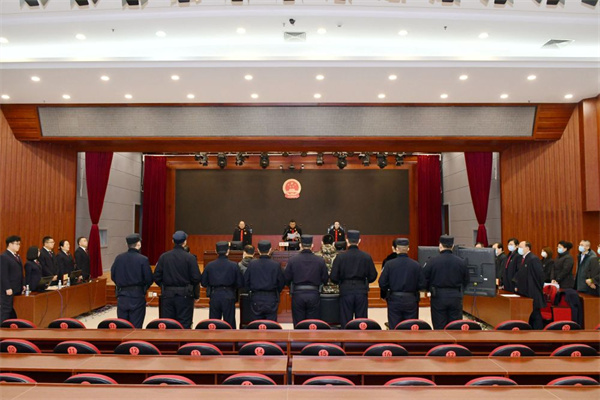2020年11月20日,黑龙江省22家法院对38件黑恶势力和“保护伞”案件集中宣判。这是在黑龙江省牡丹江市中级人民法院拍摄的宣判现场。新华社发
