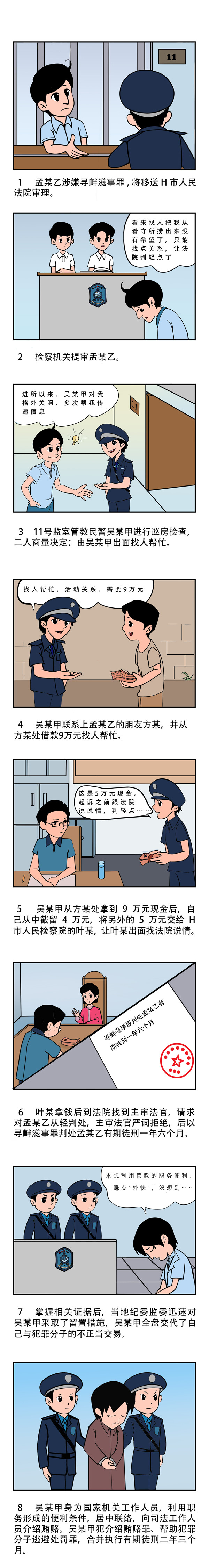 从本案的违纪违法事实来看,吴某甲身为看守所民警,本应对犯罪分子进行过渡管理教育,却打起犯罪分子主意,做起犯罪分子的“生意”,严重影响了司法机关的正常管理秩序。从司法实践来看,介绍贿赂行为既影响了党政机关职能的正常行使,也破坏了部门之间互相监督制约的机制,既拉拢腐蚀了干部,也助长了社会不良风气,为腐败滋生提供了可乘之机。试想,如果司法工作人员都像吴某甲一样拿着权力做交易,司法机关将公信全无,公平正义将荡然无存。重拳整治介绍贿赂行为,首先要进一步加强职务犯罪知识宣传教育力度,提高党员和公职人员对贿赂犯罪危害性的认识,尤其要加强法律法规、党纪党规、职业道德等方面的教育,提高党员干部廉洁自律意识,促进他们依法规范履职。各党政机关要积极运用典型案例开展纪法宣传和警示教育,防微杜渐,增强党员干部拒腐防变思想防线。纪检监察机关和司法机关要加大对介绍贿赂行为的惩处力度,做到发现一起,查处一起,形成震慑。