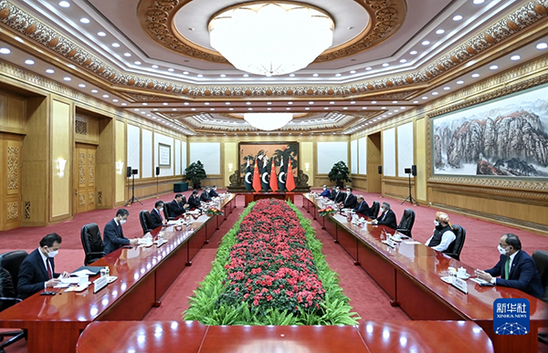 国家主席习近平11月2日上午在人民大会堂会见来华进行正式访问的巴基斯坦总理夏巴兹。