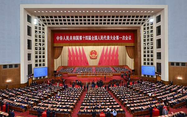 3月11日,十四届全国人大一次会议在北京人民大会堂举行第四次全体会议。 新华社记者 李鑫 摄