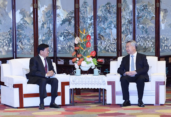 6月15日,受中共中央总书记、国家主席习近平委托,中共中央政治局常委、中央纪委书记李希代表中共中央在昆明看望并会见老挝人革党中央总书记、国家主席通伦。 新华社记者 姚大伟 摄