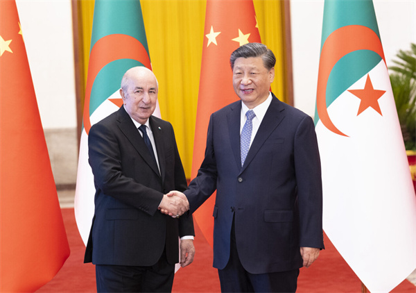 习近平指出,今年是中阿建交65周年。65年前,反对帝国主义和殖民主义、争取民族独立解放的共同事业使我们两国走到一起。65年来,中国和阿尔及利亚始终患难与共、守望相助,相互理解、相互支持,是追求共同发展和民族振兴道路上的真诚朋友、天然伙伴。中方正在以中国式现代化全面推进中华民族伟大复兴,阿方正在着力推进建设“新阿尔及利亚”。中方愿同阿方一道努力,发扬光大传统友谊,推动中阿全面战略伙伴关系取得更大发展。