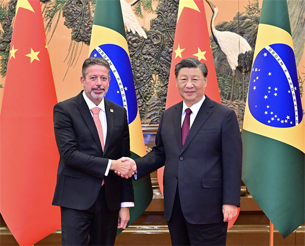 10月20日上午,国家主席习近平在北京人民大会堂会见巴西众议长里拉。新华社记者 翟健岚 摄