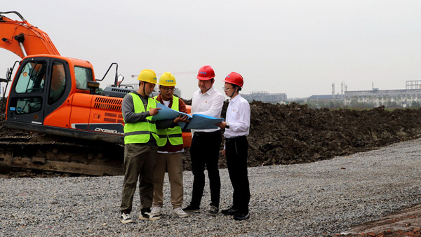 湖北省荆州市沙市区纪委监委深入工程建设项目一线,对重点环节审批、资金管理、安全生产等情况开展监督检查。图为该区纪检监察干部在锣场镇白水滩湿地保护与修复工程项目(一期)施工现场开展监督检查。 黄伟 摄