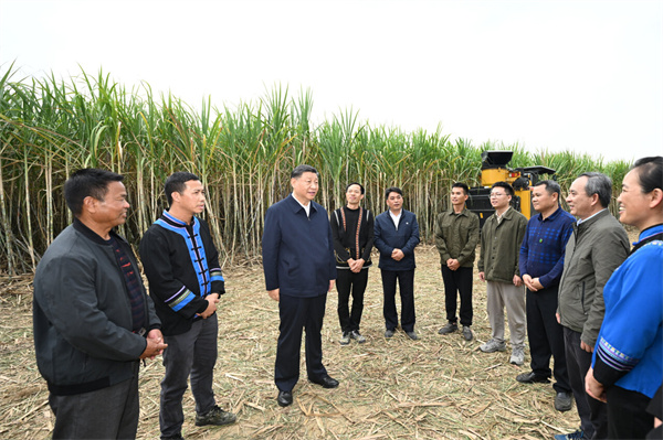 12月14日至15日,中共中央总书记、国家主席、中央军委主席习近平在广西考察。这是14日下午,习近平在来宾市国家现代农业产业园黄安优质“双高”糖料蔗基地考察。新华社记者 王晔 摄