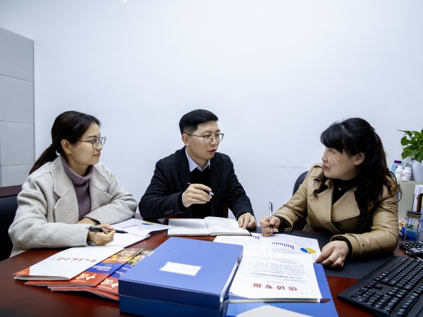 湖北省宜昌市纪委监委信访室干部一起讨论研究信访分析报告。 唐强 摄