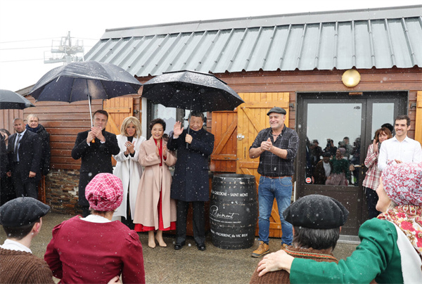 习近平说,这里的美丽风光和特色美食给我留下深刻印象。欢迎更多法国优质农食产品进入中国百姓家,也欢迎更多友好的法国人民去中国参观访问。