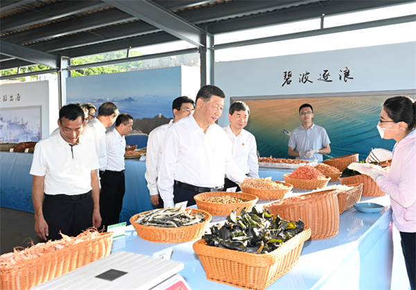 10月15日至16日,中共中央总书记、国家主席、中央军委主席习近平在福建考察。这是15日下午,习近平在漳州市东山县陈城镇澳角村考察时,了解海鲜干货和渔获产品交易情况。新华社记者 谢环驰 摄