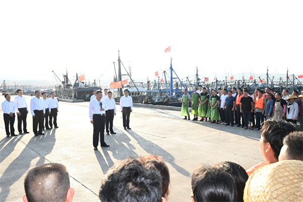 10月15日至16日,中共中央总书记、国家主席、中央军委主席习近平在福建考察。这是15日下午,习近平在漳州市东山县陈城镇澳角村考察时,同渔民们亲切交流。新华社记者 谢环驰 摄