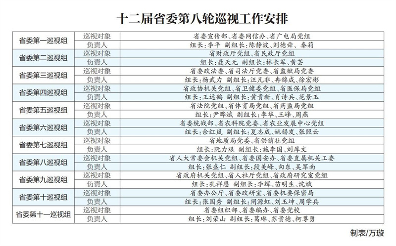 经省委批准,十二届省委第八轮巡视将派出11个巡视组,对省委宣传部等31家省直单位党组(党委)开展巡视,同步开展选人用人、落实意识形态工作责任制专项检查。(记者杨宏斌、通讯员王婧)