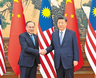 安瓦尔表示,习近平主席提出构建人类命运共同体等重要理念,倡导不同文明包容互鉴,并就引领推动“金砖+”合作提出高屋建瓴的意见建议,体现了对人类文明进步和人民利益福祉的深厚情怀和智慧担当,代表了全球南方的共同愿望和心声。马方对习近平主席的远见和倡议表示赞赏和支持。马来西亚政府致力于进一步深化同中国的全面战略伙伴关系,加强信息技术、数字经济、能源等合作。马方钦佩中方在减贫领域取得的令人赞叹的成就,期待学习借鉴中方治国理政经验。马中在许多重大国际地区问题上理念相同、立场相近,马方坚持战略自主,愿同中方密切多边协作,维护地区和平稳定和发展繁荣。