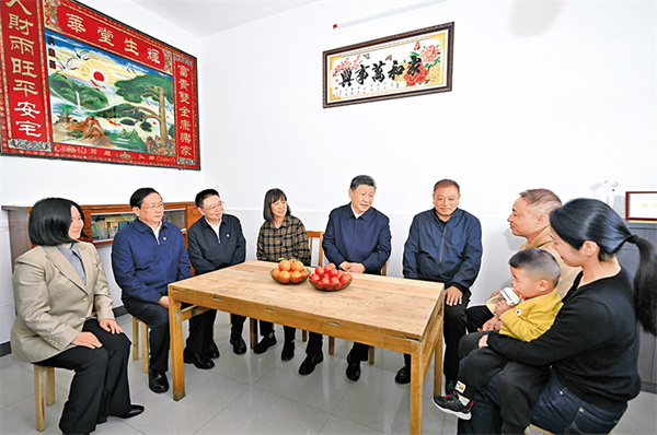 2024年11月4日至6日,中共中央总书记、国家主席、中央军委主席习近平在湖北考察。这是5日上午,习近平在咸宁市嘉鱼县潘家湾镇四邑村村民熊成龙家,同一家人围坐在一起拉家常。新华社记者 燕雁/摄