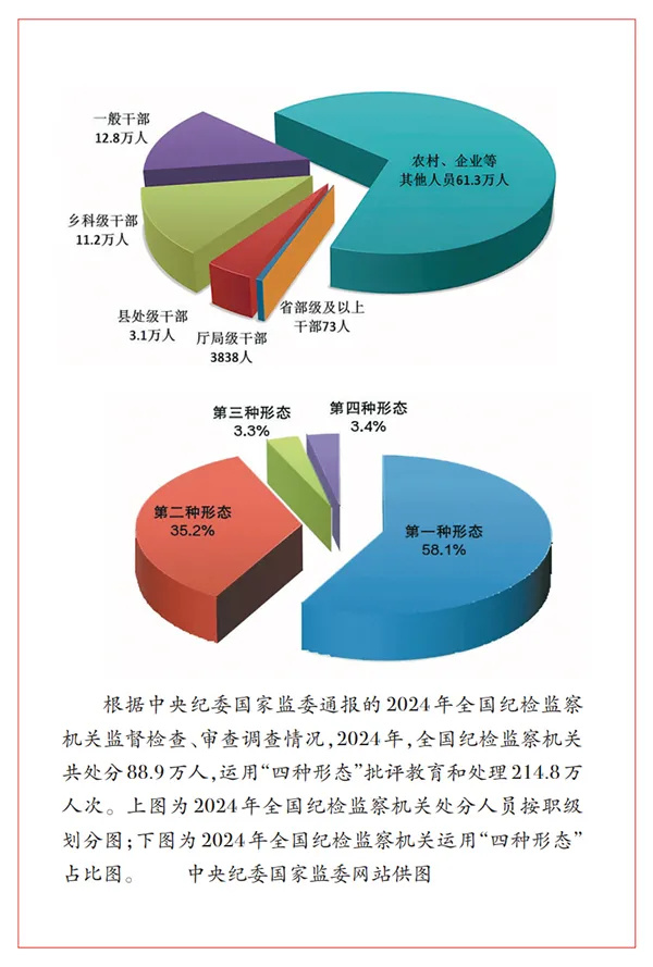 中央纪委国家监委和各级纪检监察机关坚持以习近平新时代中国特色社会主义思想为指导,坚定拥护“两个确立”、坚决做到“两个维护”,围绕党和国家中心任务,持续深入强化政治监督、正风肃纪反腐,推动健全全面从严治党体系、完善党和国家监督体系,巩固拓展主题教育和教育整顿成果,推动纪检监察工作高质量发展取得新成效。中央纪委常委会把学习贯彻习近平新时代中国特色社会主义思想特别是习近平总书记关于党的自我革命的重要思想作为贯穿全年的主题主线,带动全系统深学细悟党的创新理论,坚定纪检监察工作正确方向。健全政治监督具体化、精准化、常态化机制,围绕党的二十届三中全会重大部署谋深做实政治监督,推动党中央大政方针落地见效。在党纪学习教育中努力走好“第一方阵”,认真学习领会习近平总书记关于全面加强党的纪律建设的重要论述,紧扣“六项纪律”逐条学习、深入研讨,引领全系统学深一层、熟知善用,推动党员、干部学纪知纪明纪守纪。持续狠刹享乐主义、奢靡之风,重拳纠治形式主义、官僚主义,以常态长效治理确保贯彻落实中央八项规定精神走深走实。纵深推进反腐败斗争,深化拓展金融、国有企业、能源、烟草、医药、体育、基建工程和招标投标等重点领域反腐,严肃查处政商勾连腐败,深入查处新型腐败和隐性腐败,坚持受贿行贿一起查,深化以案促改促治,有力铲除腐败滋生的土壤和条件。开展群众身边不正之风和腐败问题集中整治,以超常规举措惩治“蝇贪蚁腐”,坚决维护群众利益,巩固党的执政根基。深化政治巡视,对68家部门单位开展常规巡视,首次对金融领域开展联动巡视、对地级市提级巡视,做实边巡边查、立行立改,巡视巡察综合监督作用进一步彰显。完善纪检监察体制机制和法规制度体系,配合全国人大常委会做好监察法修改工作,全面推进数字纪检监察体系建设,把制度优势更好转化为正风肃纪反腐效能。