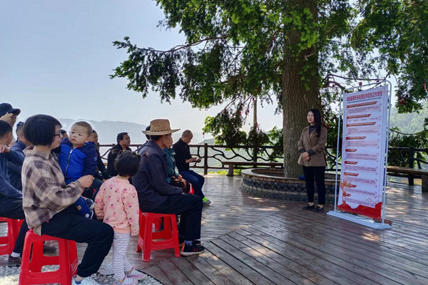 图为该县峡口镇岩岭村组织开展“以案说纪”微课堂