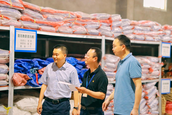 当阳市纪检监察干部检查防汛物资储备情况