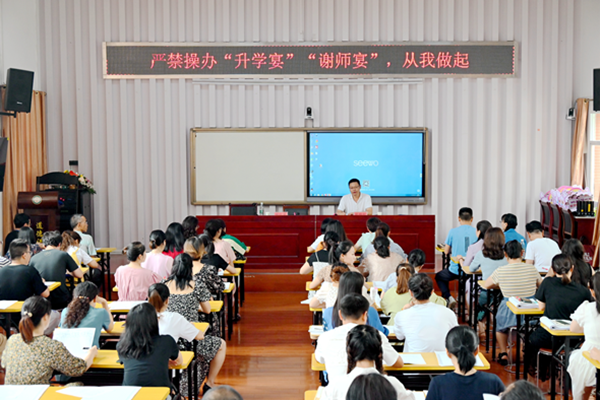 图为该区某中学开展宣传教育大会,提醒教师严禁参加学生的“升学宴”“谢师宴”。