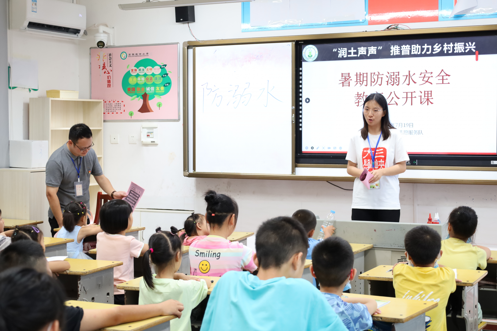 图为高家堰镇中小学校“暑期防溺水安全教育公开课”现场,镇纪委干部既当“监督员”,又当“宣讲员”。