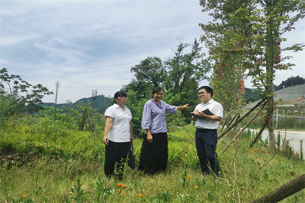 图为该县纪委监委干部在花香水岸生态修复工程项目部回访