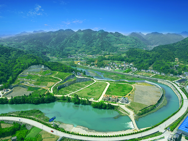 图为长阳花香水岸公司非法挖山采石问题整改后的航拍画面