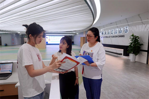 图为西陵区纪检监察干部前往当地人力资源市场了解惠企政策情况