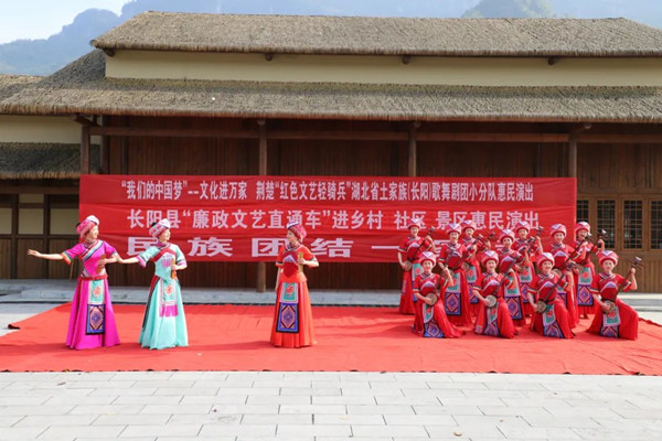 图为长阳“廉政文艺直通车”进乡村惠民演出活动现场