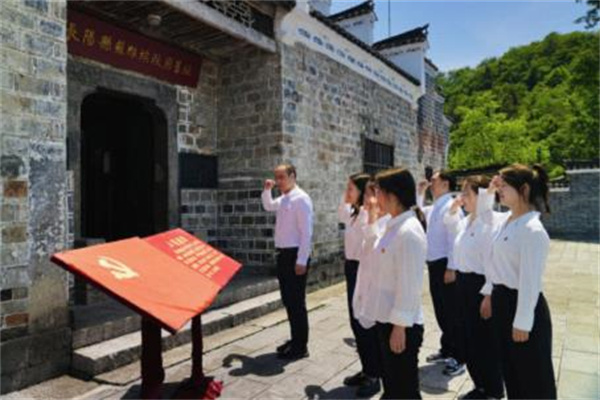 图为该县纪委监委机关第三党支部到红色革命旧址开展支部主题党日活动,重温入党誓词