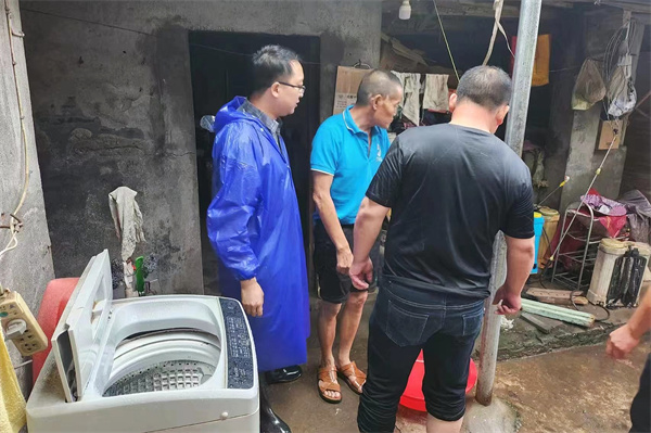 图为该市七星台镇纪检监察干部在石套子村开展汛期村民住房安全实地监督检查