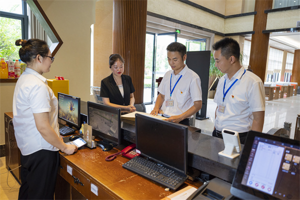 图为该区纪检监察干部在某餐饮店查阅预定宴席记录,检查是否存在违规操办“升学宴”“谢师宴”等问题