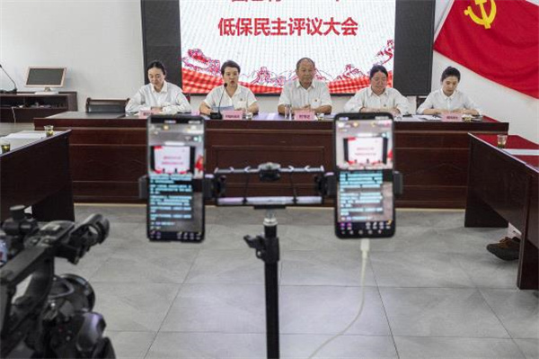 图为该区三斗坪镇园艺村通过网络直播全程公开低保民主评议过程