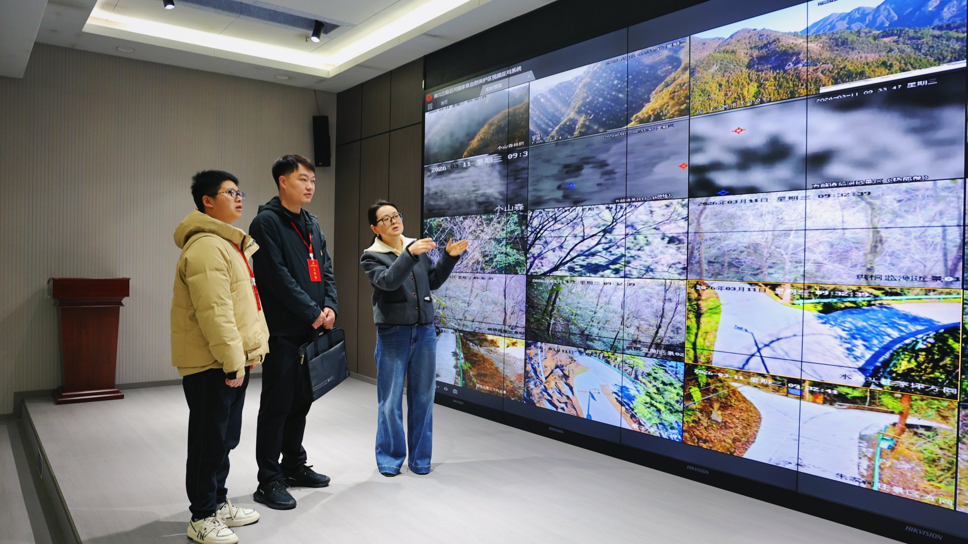 湖北省五峰土家族自治县纪委监委紧盯生态保护责任落实、巡护管护、问题整改等关键环节,针对林业林场、自然资源等职能部门履职情况加强监督检查,通过实地走访、台账核查、现场问询,推动筑牢武陵山片区生态安全屏障。图为该县纪检监察干部在湖北后河国家级自然保护区管理局了解有关情况。(湖北省五峰土家族自治县纪委监委供 李莫 摄)